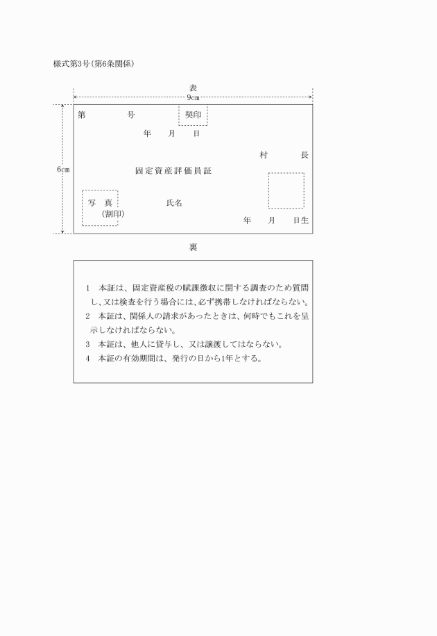 第6条 条例第4条の規定による徴税吏員等の証票の様式及び条例第65条の規定による固定資産評価員等の証票の様式は、それぞれ次に掲げるとおりとする。