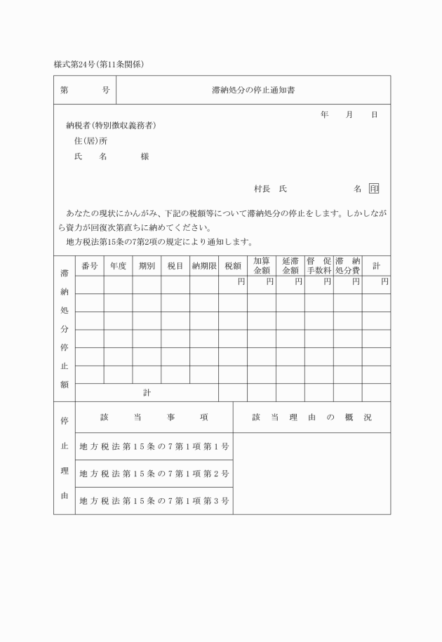 法第15条の7第2項 | 滞納処分の停止通知書 | |