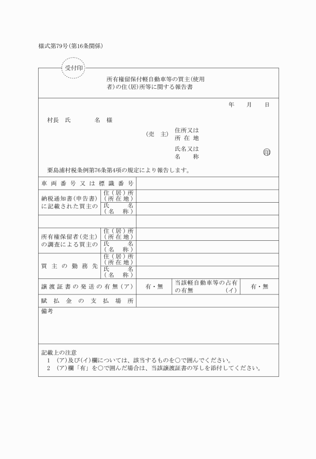 条例第76条第4項 | 所有権留保付軽自動車等の買主(使用者)の住(居)所等に関する報告書 | |